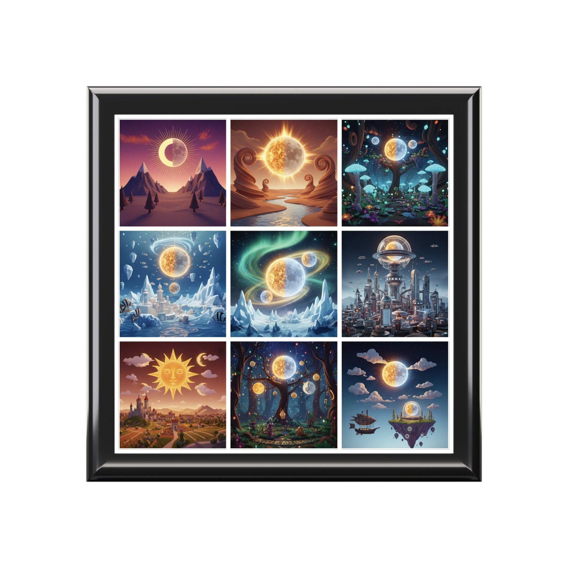 - 6" x 6" glossy sublimation ceramic tile on the lid featuring a celestial collage